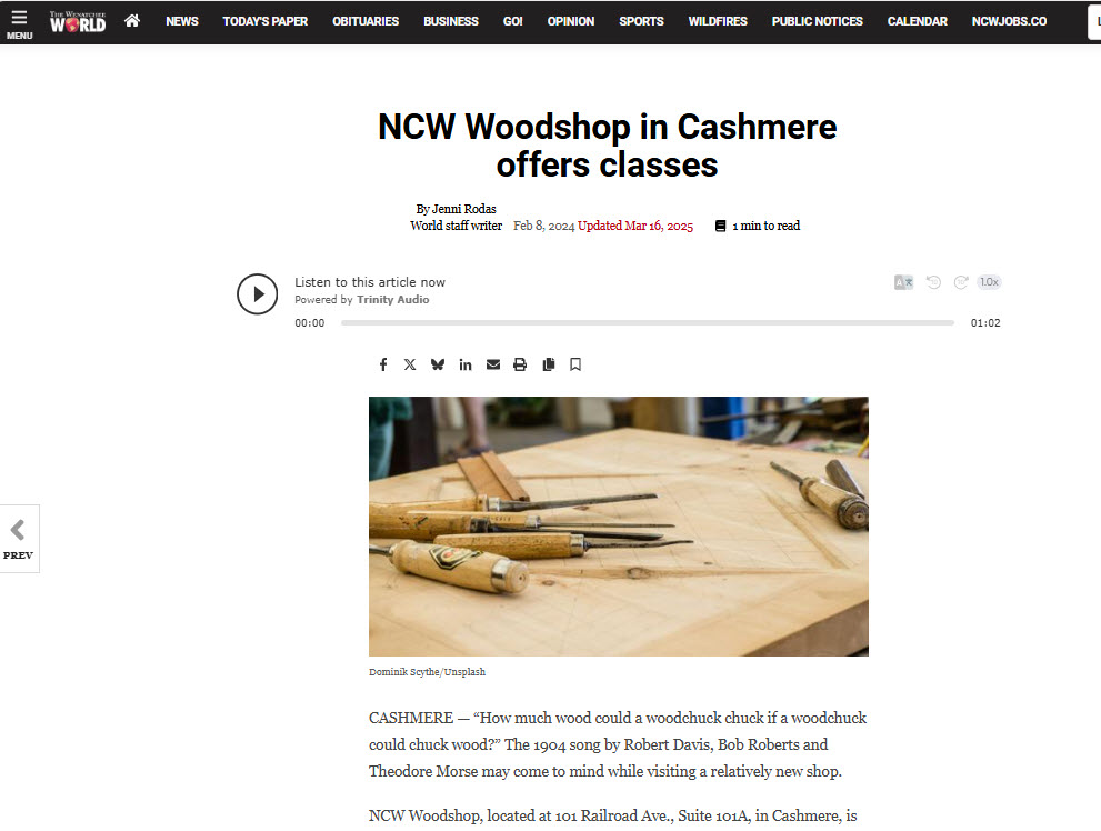 NCW Woodshop has been proud to be featured by local newspapers and television outlets highlighting the growth of our community makerspace and hands-on education programs in Wenatchee.
