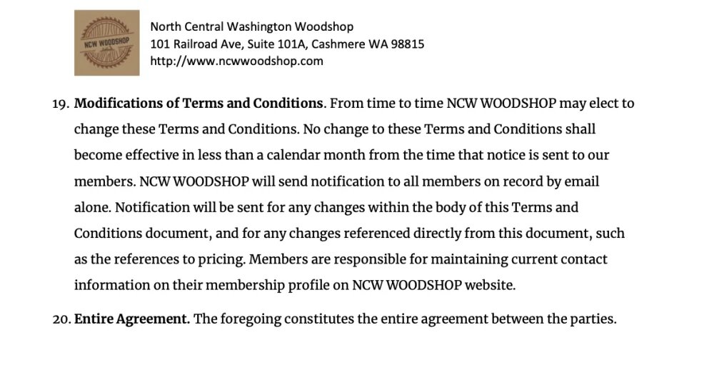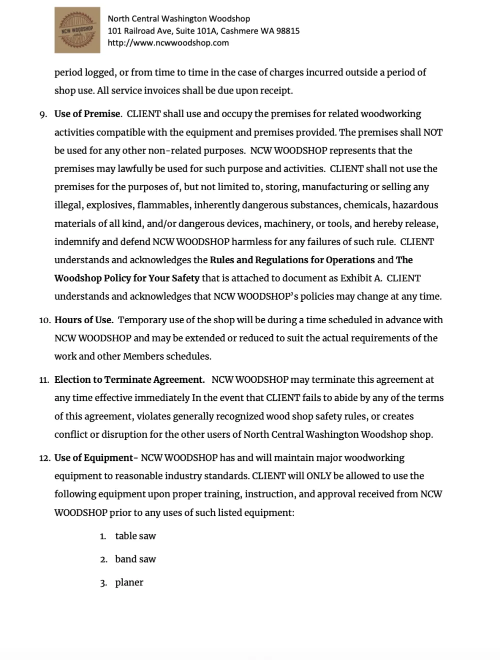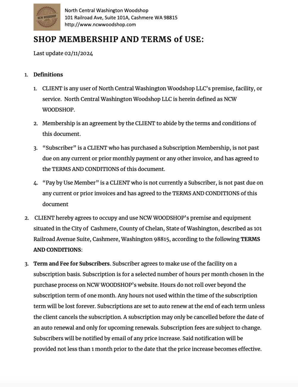 Please review and Sign the following form prior to attending a class at NCW Woodshop